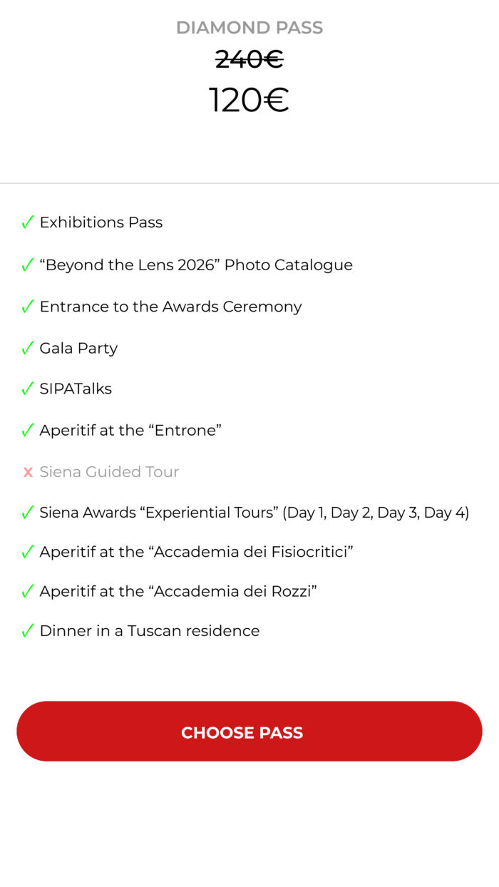 “We want you to live a once in a lifetime experience in the name of photography and of the Siena Awards Festival.”